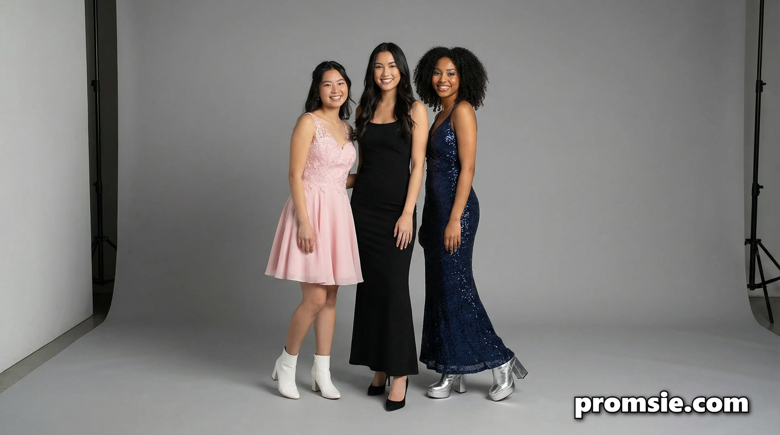 A pastel dress with heavy black combat boots is a staple grungier look, but for prom, you might want to elevate it. Metallic boots are a massive power move. Silver knee-highs with a cool-toned blue or purple dress look futuristic. White boots with a dark dress give a 60s mod energy. Just avoid cutting your leg line in a weird place. If you wear a mid-length dress with ankle boots, you look shorter. Stick to the extremes: very long dress, very tall boots.
