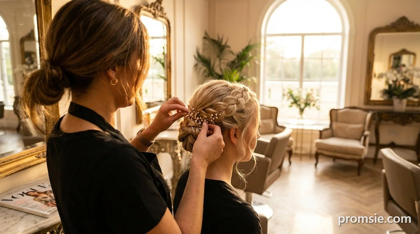 A good up-do takes 45 minutes to an hour. Full face makeup takes another hour. A single stylist can realistically only fit three or four girls into that critical "pre-prom" time slot (12:00 PM to 4:00 PM).